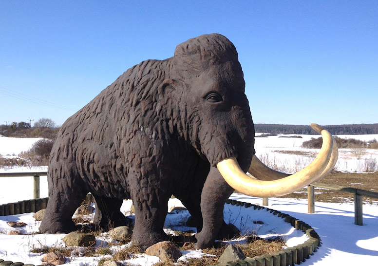 Leistungen: Wollhaarmammut (Höhe 3,50 m), Styropor und Glasfaserpolymerbeton