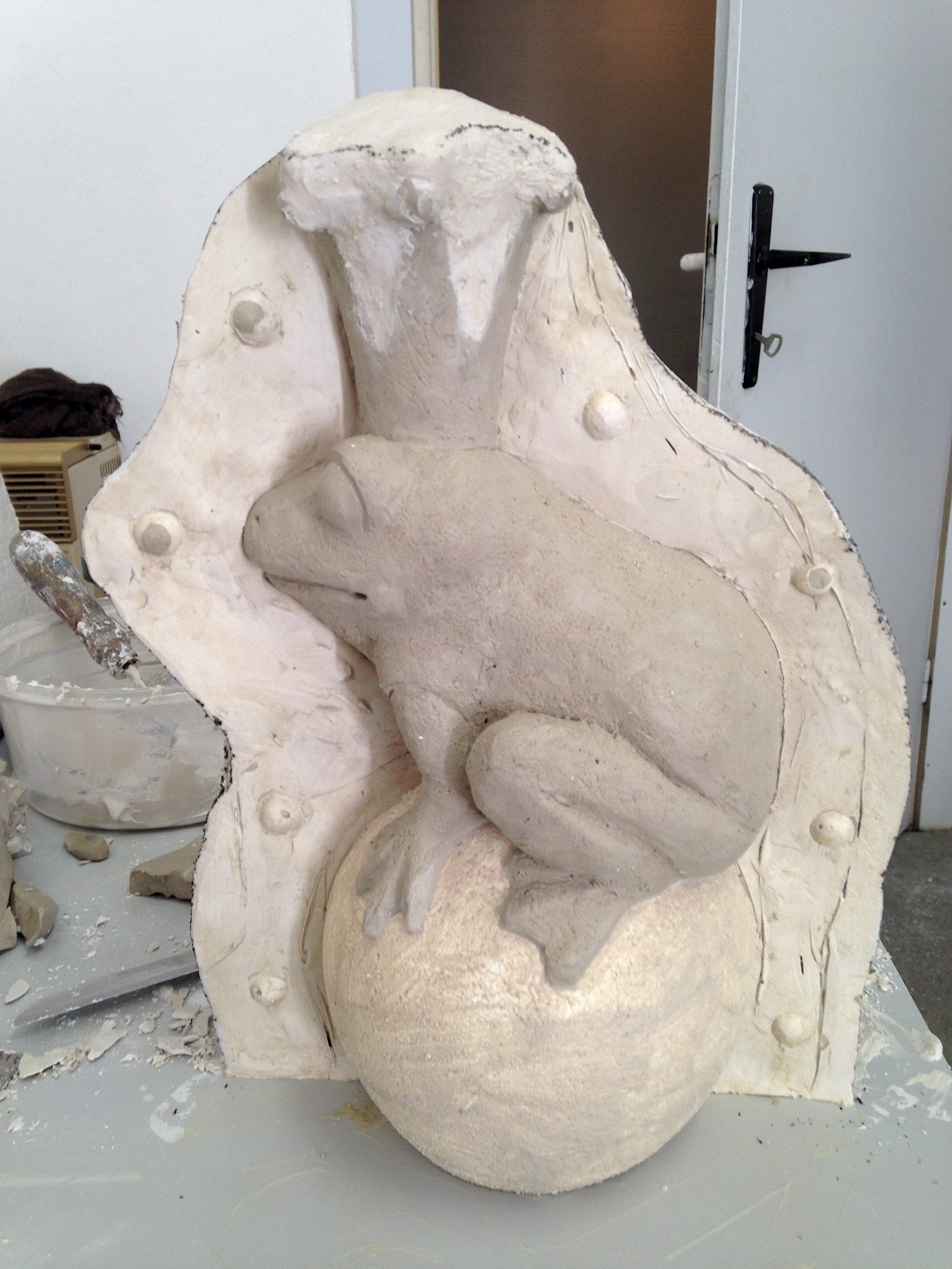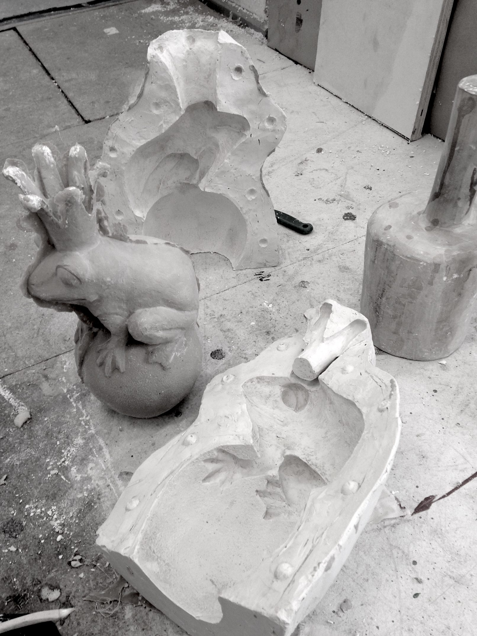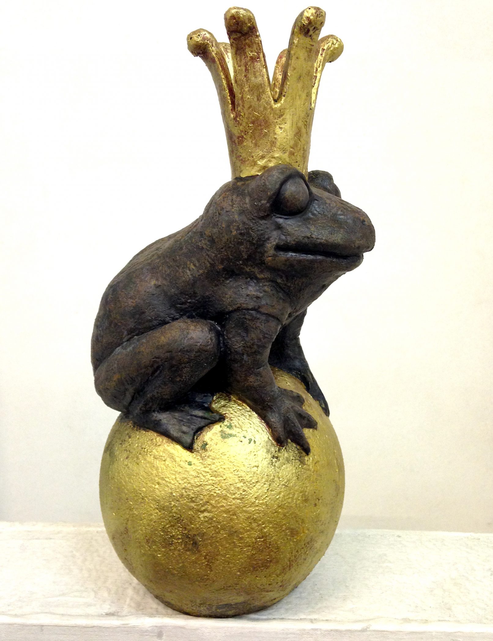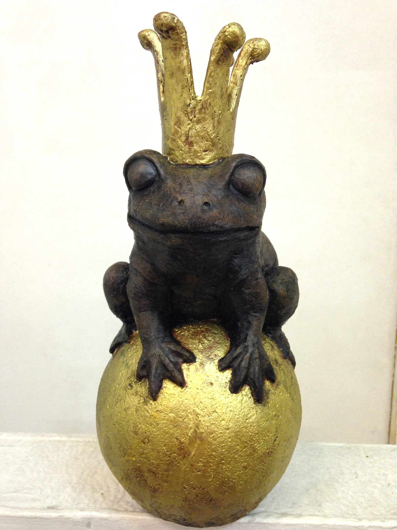 Leistungen: Froschkönig ca.25 cm hoch modelliert und in Kautschuk gegossen, bemalt