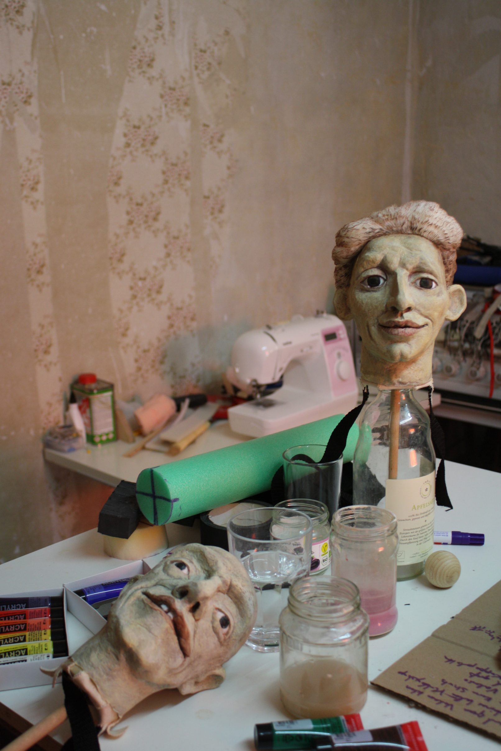 Leistungen: Entwurf und Puppenbau in Zusammenarbeit mit Lisette Schürer, Modelierung von 4 Köpfen und allen Händen, Abformungen, teilweise Kostüm, Mechanik, Bemalung…